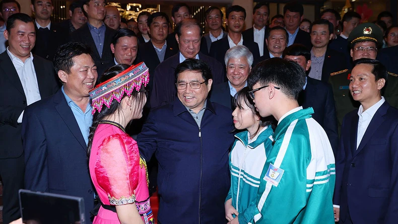 Thủ tướng Phạm Minh Chính và bà con các dân tộc tỉnh Cao Bằng.