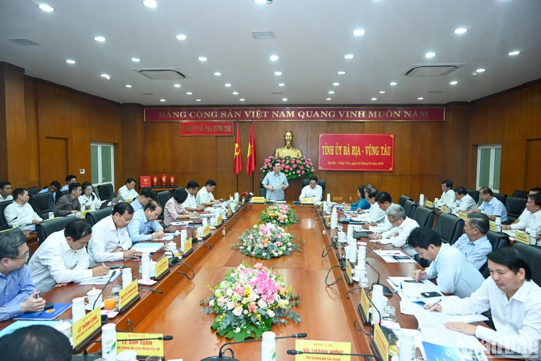 Các đồng chí Ủy viên Thường vụ Tỉnh ủy Bà Rịa-Vũng Tàu dự buổi làm việc.
