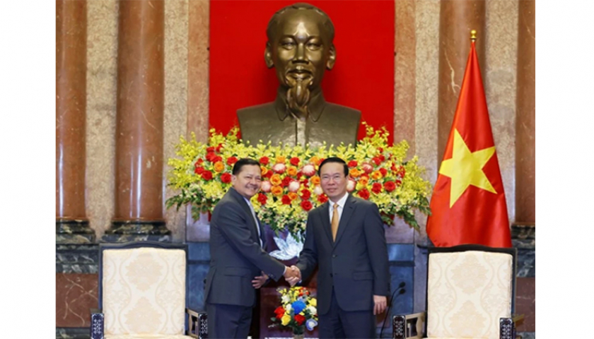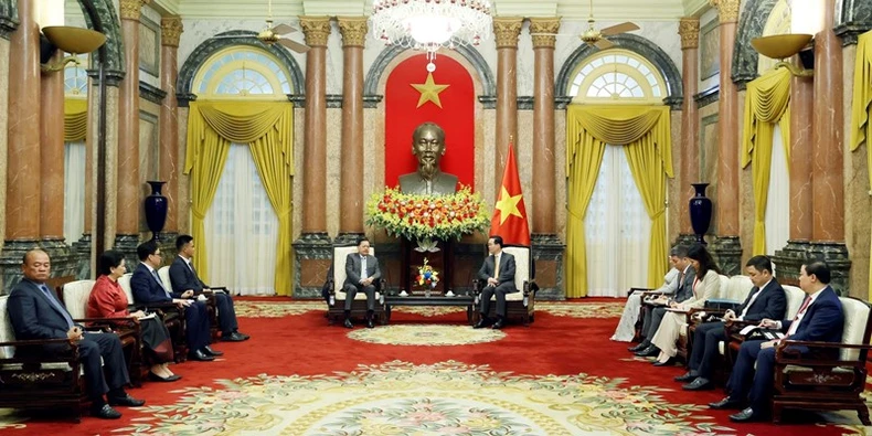 Chủ tịch nước Võ Văn Thưởng tiếp Phó Thủ tướng Chính phủ Hoàng gia Campuchia Neth Savoeun. (Ảnh: Thống Nhất - TTXVN).