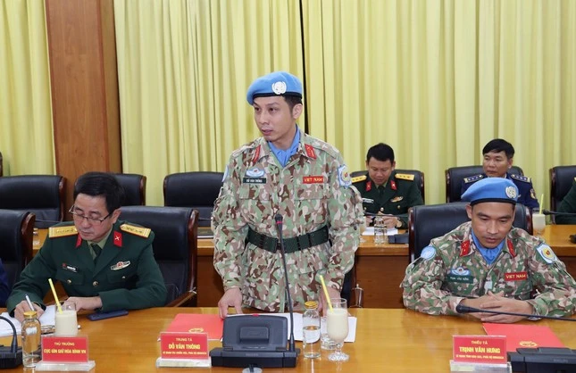 Thay mặt các sĩ quan chuẩn bị lên đường làm nhiệm vụ, Trung tá Đỗ Văn Thông cho biết, để nâng cao khả năng thực hiện nhiệm vụ gìn giữ hòa bình Liên hợp quốc, các sĩ quan đã chủ động trao đổi kinh nghiệm với các đồng nghiệp đi trước; đồng thời, tích cực học tập, rèn luyện, lĩnh hội kiến thức, kỹ năng và phong cách làm việc thông qua thực tiễn huấn luyện tại Cục Gìn giữ hòa bình Việt Nam và các khóa tập huấn ở nước ngoài. Trung tá Đỗ Văn Thông khẳng định, các sĩ quan đều đã sẵn sàng lên đường với quyết tâm cao nhất, hoàn thành xuất sắc nhiệm vụ Liên hợp quốc, Quân ủy Trung ương và Thủ trưởng Quốc phòng giao.