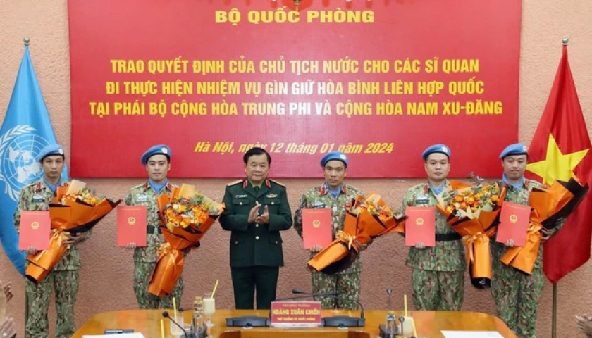 Trao quyết định của Chủ tịch nước cho 5 sĩ quan lên đường làm nhiệm vụ gìn giữ hòa bình