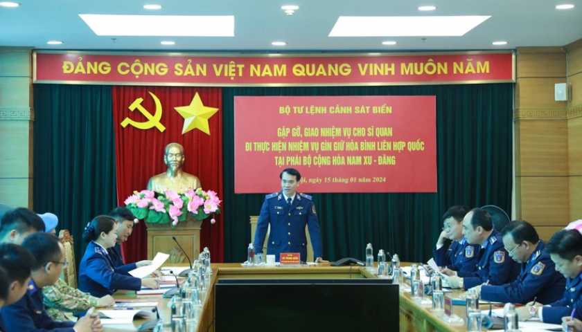 Đây là lần thứ 3 sĩ quan Cảnh sát biển Việt Nam được lựa chọn tham gia Lực lượng Gìn giữ hòa bình Liên hợp quốc. Thiếu tướng Vũ Trung Kiên, Phó Tư lệnh Pháp luật Cảnh sát biển Việt Nam chủ trì buổi gặp mặt.