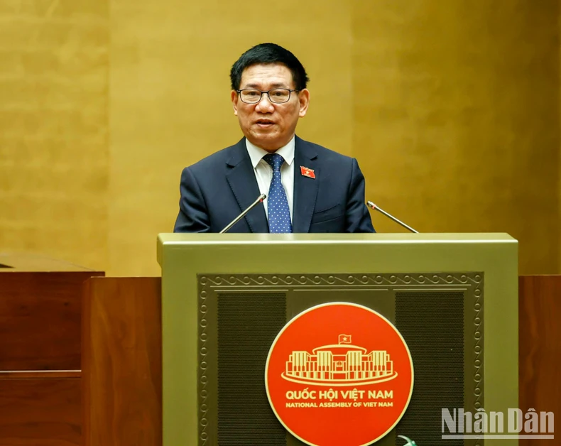 Bộ trưởng Tài chính Hồ Đức Phớc trình bày Tờ trình về dự thảo Nghị quyết về một số cơ chế, chính sách đặc thù thực hiện các chương trình mục tiêu quốc gia. (Ảnh: DUY LINH).