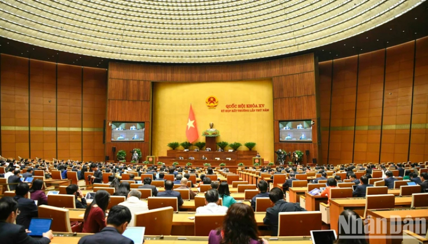 Quang cảnh phiên họp của Quốc hội sáng 16/1. (Ảnh: DUY LINH).