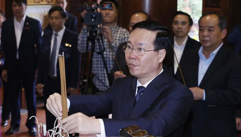 Chủ tịch nước Võ Văn Thưởng dâng hương tưởng nhớ Chủ tịch Hồ Chí Minh tại Khu di tích Quốc gia đặc biệt Kim Liên