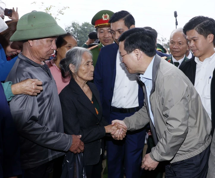 Chủ tịch nước Võ Văn Thưởng với nhân dân xã Thanh Thủy. (Ảnh: TTXVN).