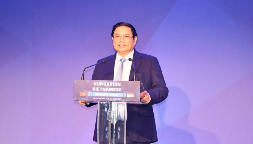 Thủ tướng khẳng định, Việt Nam thực hiện chính sách đối ngoại độc lập, tự chủ, đa dạng hóa, đa dạng hóa, là thành viên có trách nhiệm trong cộng đồng quốc tế; Việt Nam xây dựng nền kinh tế độc lập, tự chủ, tích cực, chủ động hội nhập quốc tế, xây dựng nền văn hóa đậm đà bản sắc dân tộc, văn hóa đặt ngang tầm với chính trị, kinh tế…. Việt Nam thực hiện lợi ích hài hòa, rủi ro chia sẻ, hài hòa lợi ích giữa Nhà nước, người dân, doanh nghiệp. Thủ tướng kêu gọi các doanh nghiệp Hungary, Việt Nam đến đầu tư vào hai nước, góp phần gia tăng lợi ích, góp phần củng cố, tăng cường quan hệ hữu nghị tốt đẹp giữa hai nước gần 75 năm, hy vọng 75 năm tới, hai nước hùng cường, mạnh mẽ, hợp tác hiệu quả hơn, mang lại lợi ích cao hơn cho người dân, doanh nghiệp, góp phần hòa bình, hợp tác và thịnh vượng cho khu vực và thế giới. Thủ tướng chúc tình hữu nghị hai nước mãi mãi xanh tươi, đời đời bền vững.