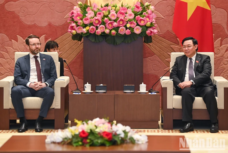 Chủ tịch Quốc hội Vương Đình Huệ tiếp Đại sứ Anh tại Việt Nam Iain Frew. (Ảnh: DUY LINH).