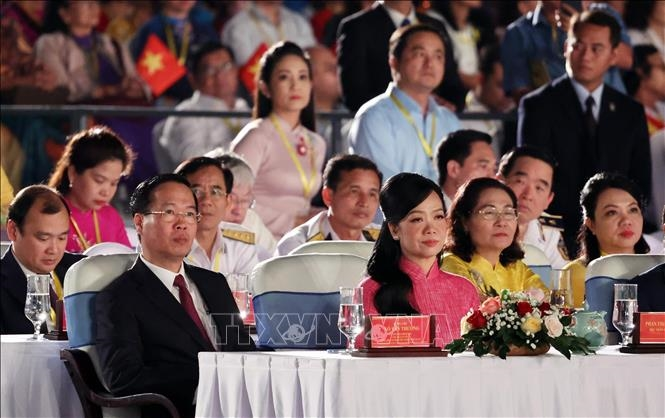 Chủ tịch nước Võ Văn Thưởng và Phu nhân dự Chương trình nghệ thuật đặc biệt “Xuân Quê hương 2024”. (Ảnh: Thống Nhất – TTXVN).
