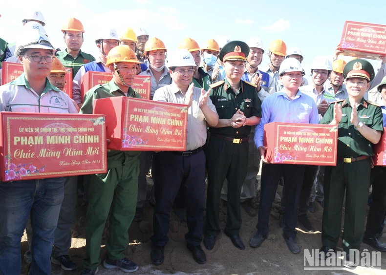 Thăm hỏi, tặng quà chúc Tết cán bộ, công nhân tham gia thi công trên công trường, Thủ tướng đề nghị nhà thầu cần quan tâm đãi ngộ, động viên người lao động làm xuyên Tết, không nghỉ lễ; quá trình thi công nỗ lực vượt mọi khó khăn, bảo đảm chất lượng, tiến độ.