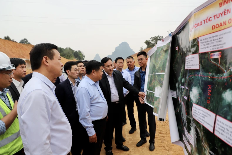 Bộ trưởng Nguyễn Chí Dũng đánh giá cao tiến độ thực hiện dự án, đặc biệt là trong điều kiện địa hình phức tạp.