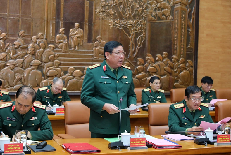 Tại hội nghị, Thượng tướng Huỳnh Chiến Thắng đã báo cáo với Đại tướng Phan Văn Giang và lãnh đạo Bộ Quốc phòng về kết quả thực hiện nhiệm vụ của Bộ Tổng Tham mưu Quân đội nhân dân Việt Nam năm 2023 và một số nhiệm vụ trọng tâm thời gian tới.