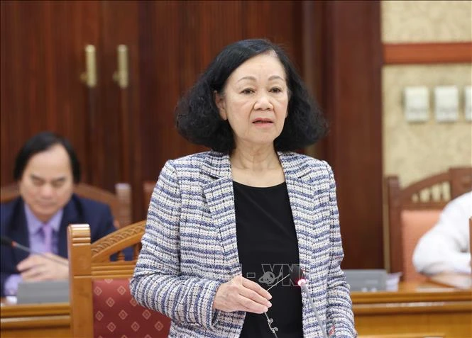 Đồng chí Trương Thị Mai, Ủy viên Bộ Chính trị, Thường trực Ban Bí thư, Trưởng Ban Tổ chức Trung ương phát biểu chỉ đạo hội nghị. (Ảnh: TTXVN).