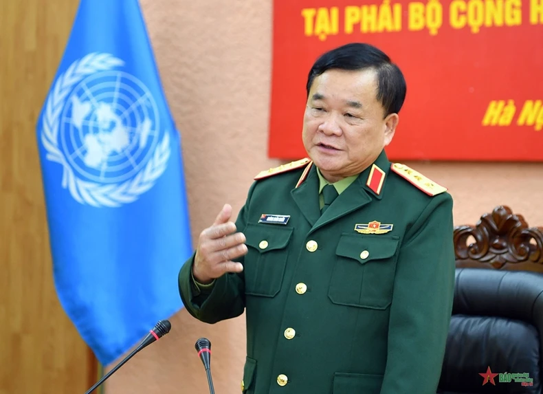 Thượng tướng Hoàng Xuân Chiến, Ủy viên Trung ương Đảng, Thứ trưởng Quốc phòng, Tổ trưởng Tổ Công tác liên ngành, Trưởng Ban Chỉ đạo Bộ Quốc phòng về tham gia hoạt động gìn giữ hòa bình Liên hợp quốc chủ trì và phát biểu giao nhiệm vụ cho các sĩ quan.