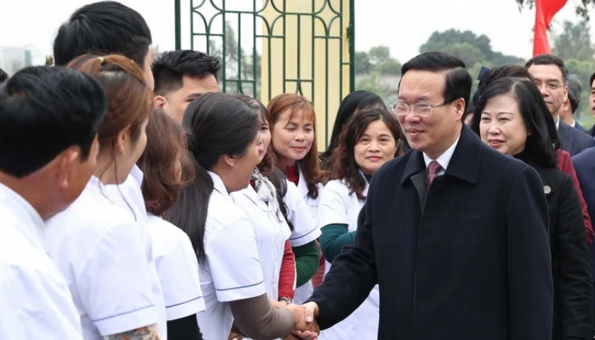 Chủ tịch nước Võ Văn Thưởng thăm, chúc mừng cán bộ, y bác sĩ, nhân viên y tế tại huyện Thanh Liêm, Hà Nam