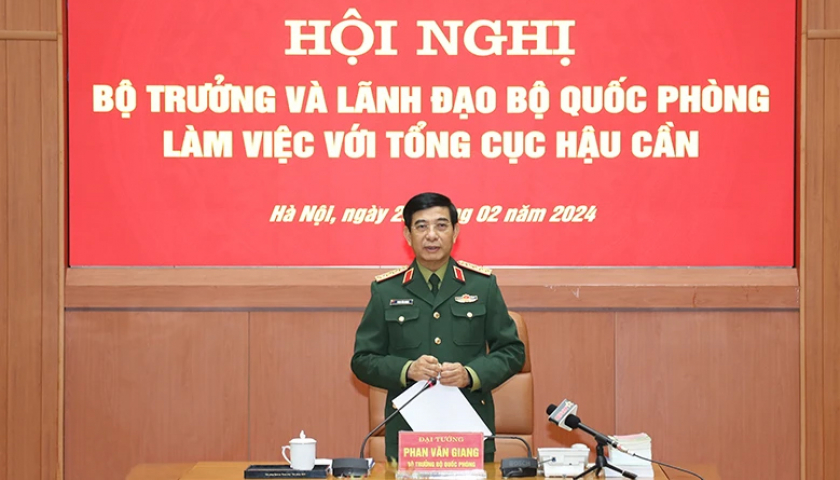 Phát biểu tại buổi làm việc, Đại tướng Phan Văn Giang biểu dương Tổng cục Hậu cần và cơ quan hậu cần các cấp đã chủ động khắc phục khó khăn, phát huy tinh thần tự lực, tự cường, bảo đảm tốt công tác hậu cần cho nhiệm vụ huấn luyện, sẵn sàng chiến đấu và các nhiệm vụ khác. Công tác xây dựng ngành, chuyển đổi số, cải cách hành chính, công tác đối ngoại hậu cần đạt nhiều kết quả tích cực.