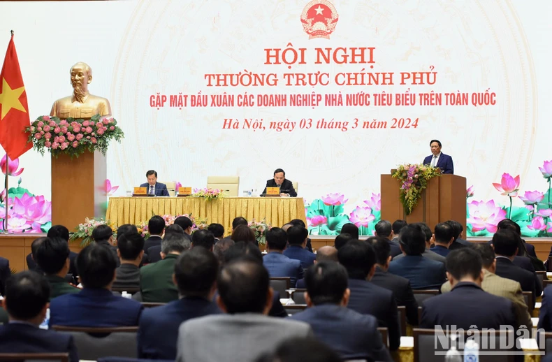 Phát biểu ý kiến khai mạc, Thủ tướng Phạm Minh Chính nhấn mạnh, hội nghị này nhằm bàn công việc liên quan các tập đoàn, tổng công ty nhà nước trong thực hiện nhiệm vụ chính trị, góp phần thực hiện thắng lợi nhiệm vụ phát triển kinh tế-xã hội năm 2024, thực hiện thắng lợi Nghị quyết Đại hội lần thứ XIII của Đảng. Đến thời điểm này, chúng ta chỉ còn gần 2 năm nữa là tổ chức Đại hội lần thứ XIV của Đảng, do đó năm 2024 là năm tăng tốc.