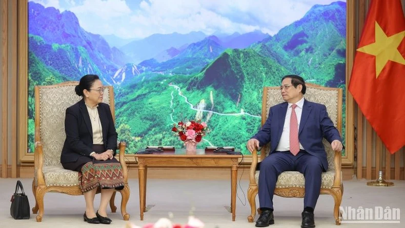 Ghi nhận ý kiến của Đại sứ về việc nỗ lực hết sức để góp phần thúc đẩy quan hệ hợp tác hai nước phát triển, ngày càng đơm hoa kết trái và bền vững, Thủ tướng Phạm Minh Chính nhấn mạnh hai bên cần triển khai hiệu quả các thỏa thuận cấp cao, các cơ chế hợp tác song phương, nhất là kết quả cuộc gặp giữa hai Đảng và Kỳ họp lần thứ 46 Ủy ban liên Chính phủ Việt Nam-Lào vừa qua, tăng cường trao đổi đoàn cấp cao và các cấp, thúc đẩy các hoạt động giao lưu và tuyên truyền trong nhân dân hai nước, nhất là các thế hệ trẻ về truyền thống quý báu và mối quan hệ có một không hai Việt Nam-Lào.
