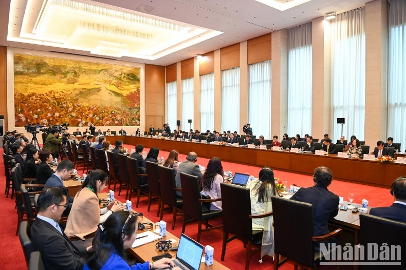 Quang cảnh cuộc làm việc tại Nhà Quốc hội. (Ảnh: DUY LINH).