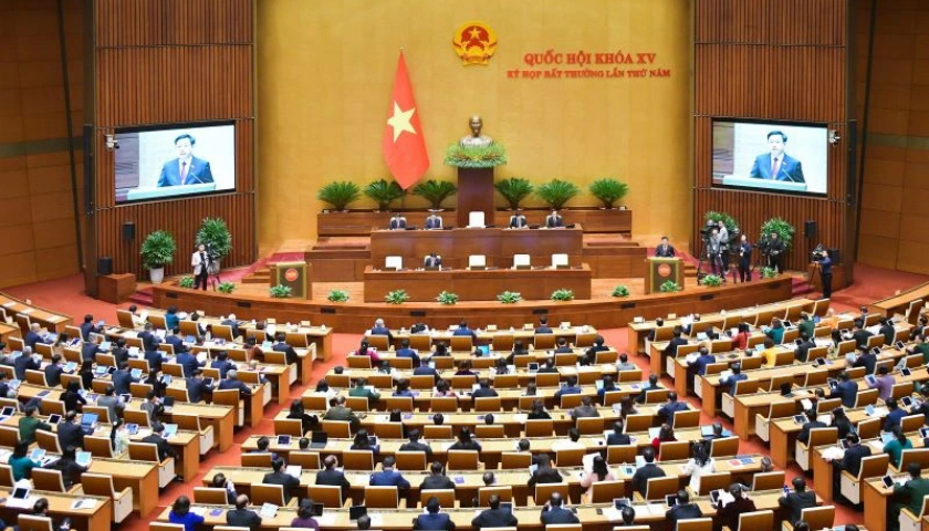Chủ tịch Quốc hội Vương Đình Huệ phát biểu tại Kỳ họp bất thường lần thứ 5, Quốc hội khóa XV. (Ảnh: quochoi.vn).