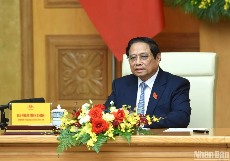 Thủ tướng Phạm Minh Chính phát biểu tại buổi tiếp các doanh nghiệp của Hội đồng Kinh doanh Hoa Kỳ-ASEAN.