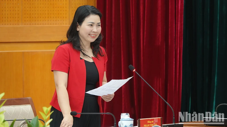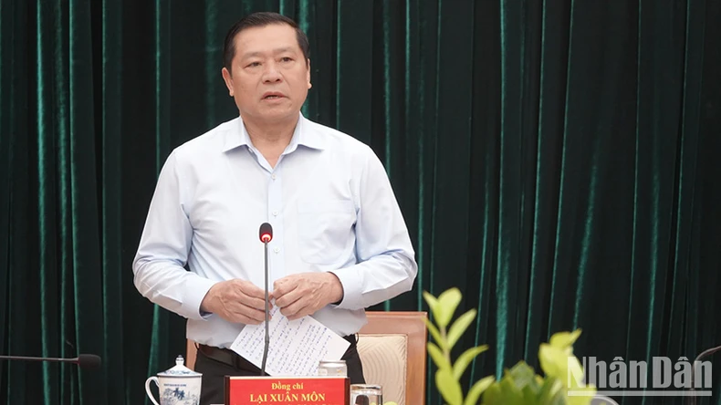Đồng chí Lại Xuân Môn, Ủy viên Trung ương Đảng, Phó Trưởng Ban Thường trực Ban Tuyên giáo Trung ương, phát biểu tại buổi làm việc.