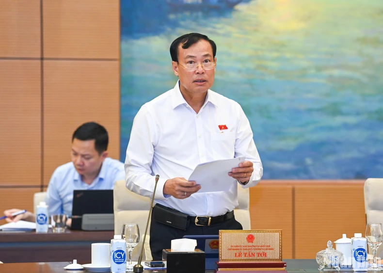 Chủ nhiệm Ủy ban Quốc phòng và An ninh của Quốc hội Lê Tấn Tới trình bày báo cáo thẩm tra về dự án Luật. (Ảnh: DUY LINH).