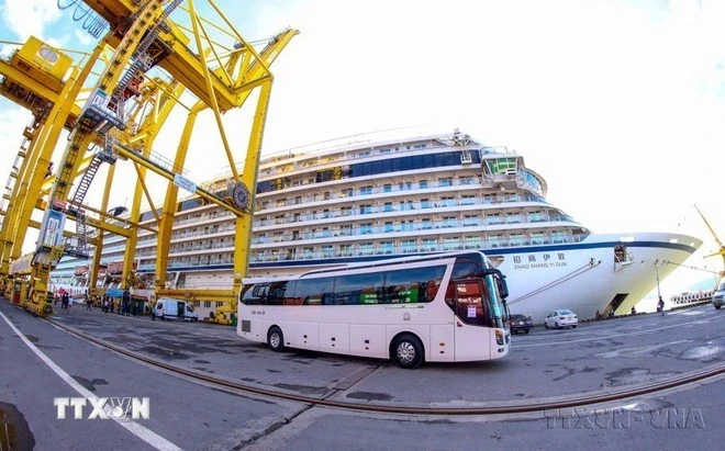 Tàu biển Zhao Shang Yi Dun, quốc tịch Trung Quốc đưa hơn 700 khách du lịch cập cảng Tiên Sa đến tham quan thành phố Đà Nẵng (12/2023).
