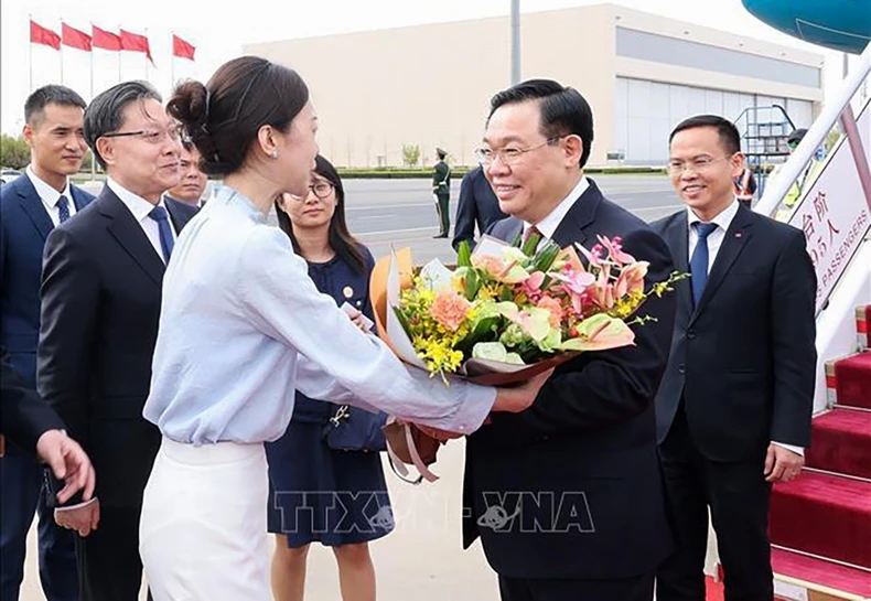 Theo Đặc phái viên TTXVN, đúng 14 giờ 50 phút (giờ Bắc Kinh tức 13 giờ 50 phút giờ Hà Nội) ngày 7/4, Chủ tịch Quốc hội Vương Đình Huệ dẫn đầu Đoàn đại biểu cấp cao nước Cộng hòa xã hội chủ nghĩa Việt Nam đến thủ đô Bắc Kinh, bắt đầu thăm chính thức nước Cộng hòa Nhân dân Trung Hoa từ ngày 7-12/4/2024, theo lời mời của Ủy viên trưởng Ủy ban Thường vụ Đại hội đại biểu nhân dân toàn quốc Trung Quốc Triệu Lạc Tế.