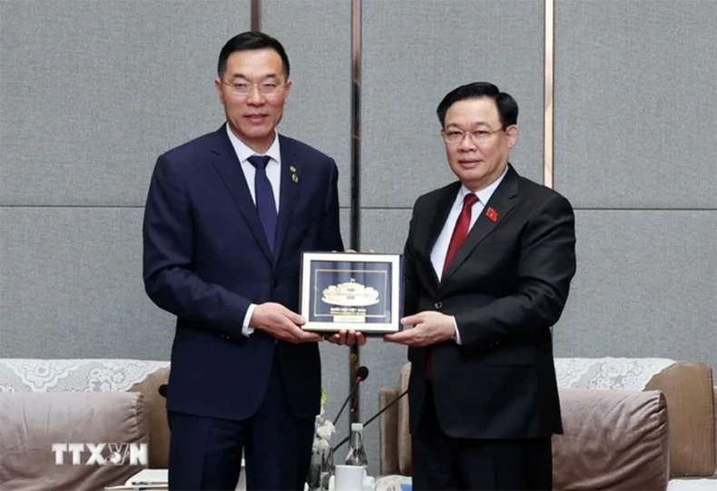 Chủ tịch Quốc hội Vương Đình Huệ tiếp ông Yan Ming, Tổng Giám đốc Công ty Bưu chính Vân Nam (thuộc Tập đoàn Bưu chính Trung Quốc). (Ảnh: Nhan Sáng/TTXVN).
