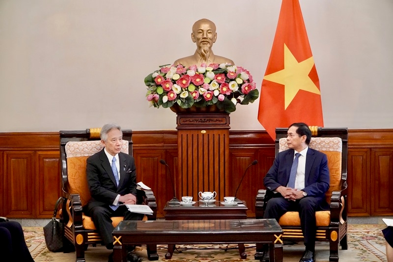 Tại buổi tiếp, hai Bộ trưởng đánh giá cao sự phát triển toàn diện và thực chất của quan hệ hợp tác hữu nghị Việt Nam – Nhật Bản trên nhiều lĩnh vực, nổi bật là việc nâng cấp quan hệ lên Đối tác chiến lược toàn diện vì hòa bình và thịnh vượng tại châu Á và trên thế giới, cùng việc tổ chức hơn 500 hoạt động kỷ niệm thiết thực, có ý nghĩa dịp kỷ niệm 50 năm thiết lập quan hệ ngoại giao năm 2023 vừa qua.