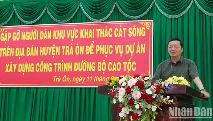 Ngày 11/5, trong chuyến làm việc về giải quyết vật liệu san lấp cho các dự án giao thông trọng điểm khu vực phía nam, Phó Thủ tướng Chính phủ Trần Hồng Hà cùng đoàn công tác Chính phủ đã có buổi gặp gỡ với người dân vùng mỏ cát tại huyện Trà Ôn, tỉnh Vĩnh Long.