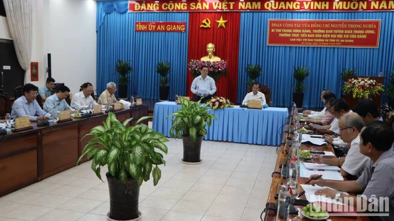Đồng chí ghi nhận và đánh giá cao những nỗ lực, cố gắng và những kết quả đạt được của Đảng bộ và nhân dân tỉnh An Giang qua 40 năm thực hiện đường lối đổi mới; Nghị quyết Đại hội 13 của Đảng.