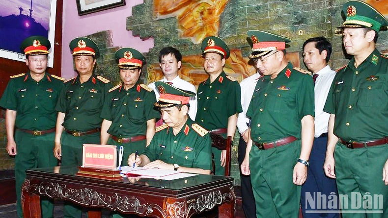 Đại tướng Phan Văn Giang ghi sổ lưu niệm tại Thành cổ Quảng Trị.
