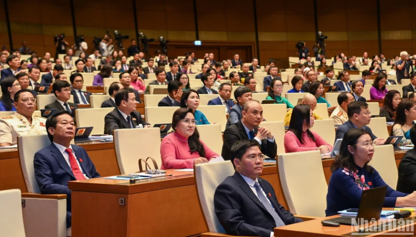 Các đại biểu dự phiên khai mạc Kỳ họp thứ 7, Quốc hội khóa XV sáng 20/5. (Ảnh: DUY LINH).