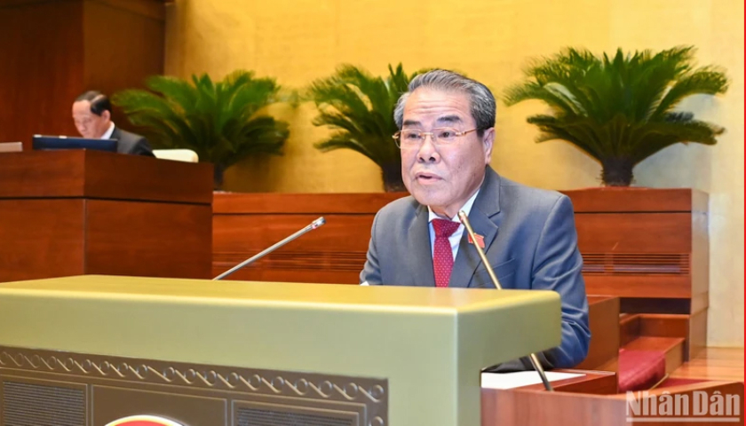 Trưởng Ban Dân nguyện thuộc Ủy ban Thường vụ Quốc hội Dương Thanh Bình trình bày báo cáo kết quả giám sát việc giải quyết kiến nghị của cử tri gửi đến Kỳ họp thứ 6. (Ảnh: LINH KHOA).
