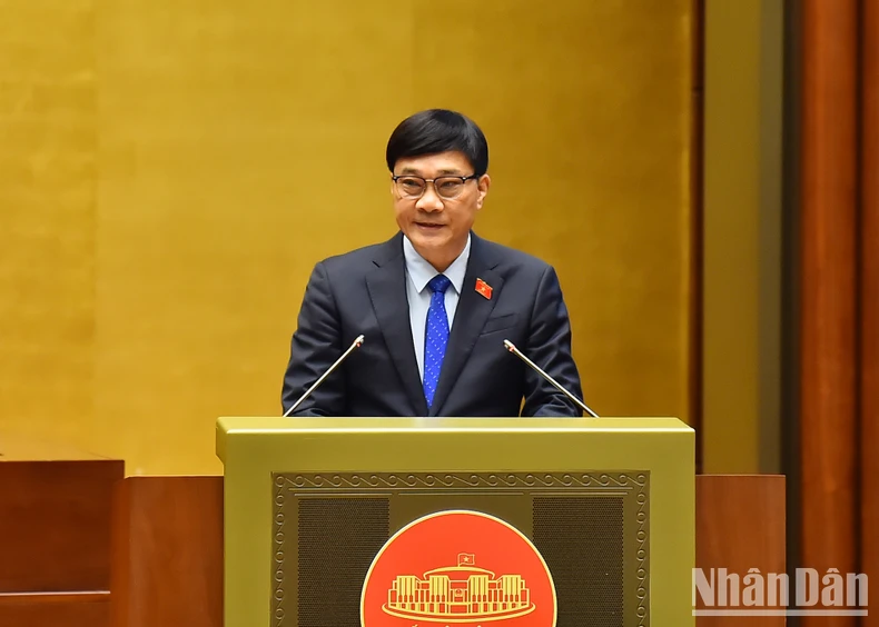 Ủy viên Ủy ban Thường vụ Quốc hội, Chủ nhiệm Ủy ban Kinh tế của Quốc hội Vũ Hồng Thanh trình bày Báo cáo giải trình, tiếp thu, chỉnh lý dự thảo Luật sửa đổi, bổ sung một số điều của Luật Đấu giá tài sản. (Ảnh: THỦY NGUYÊN).