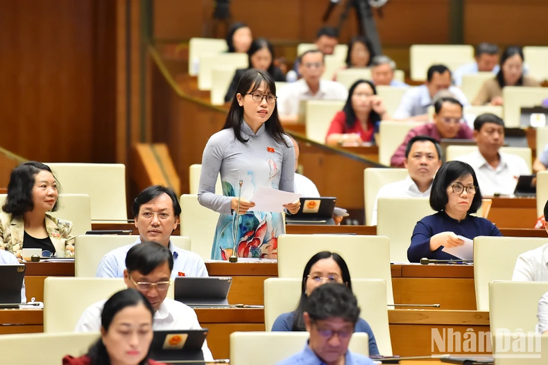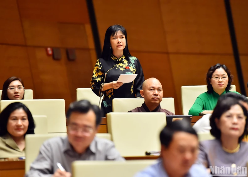 Đại biểu Trần Thị Quỳnh (Đoàn tỉnh Nam Định) phát biểu tại phiên họp sáng 29/5. (Ảnh: Thủy Nguyên).