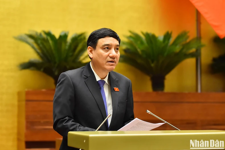 Bộ trưởng Văn hóa, Thể thao và Du lịch Nguyễn Văn Hùng trình bày tờ trình về chủ trương đầu tư Chương trình mục tiêu quốc gia về phát triển văn hóa giai đoạn 2025-2035. (Ảnh: THỦY NGUYÊN).