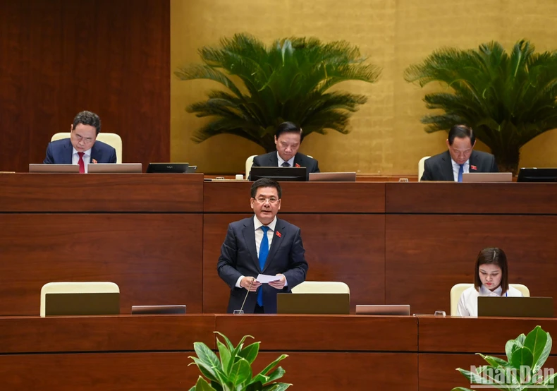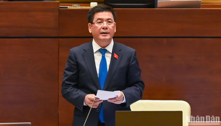 Bộ trưởng Công Thương Nguyễn Hồng Diên trả lời chất vấn của đại biểu Quốc hội. (Ảnh: LINH NGUYÊN).