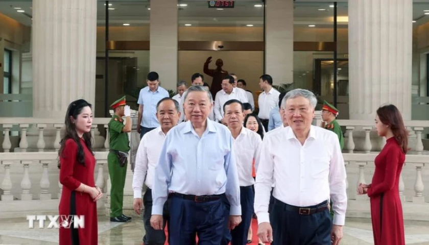 Chủ tịch nước Tô Lâm đến thăm, làm việc tại Tòa án nhân dân Tối cao.