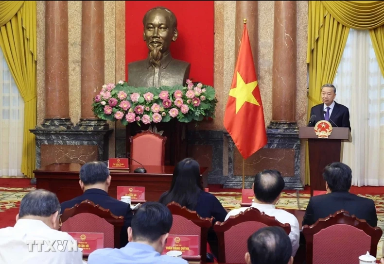 Chủ tịch nước Tô Lâm phát biểu tại buổi gặp mặt. Ảnh: TTXVN.