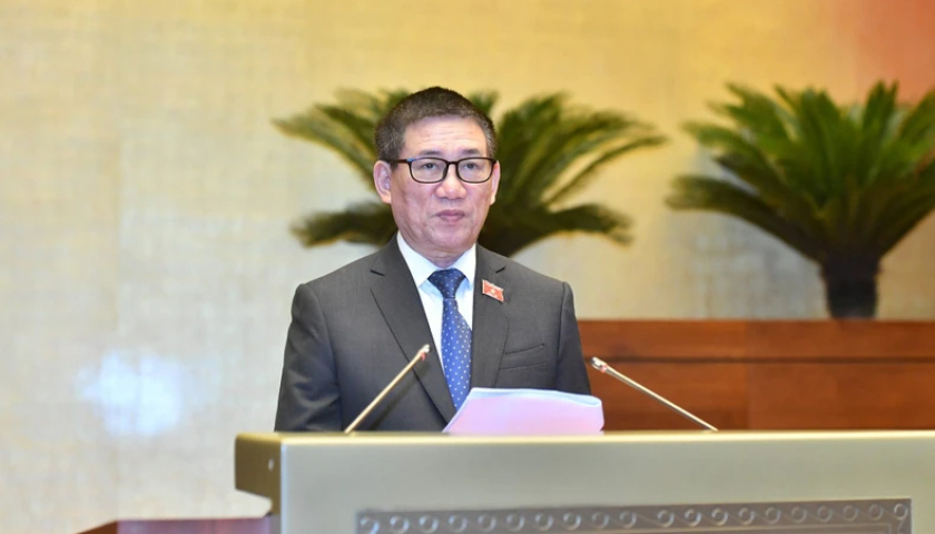 Bộ trưởng Tài chính Hồ Đức Phớc trình bày tờ trình về dự án Luật Thuế giá trị gia tăng (sửa đổi). (Ảnh: ĐĂNG KHOA).