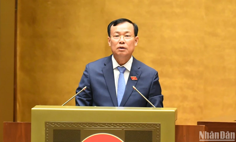 Chủ nhiệm Ủy ban Quốc phòng và An ninh Lê Tấn Tới báo cáo giải trình, tiếp thu, chỉnh lý dự thảo Luật trước khi Quốc hội biểu quyết thông qua. (Ảnh: DUY LINH).
