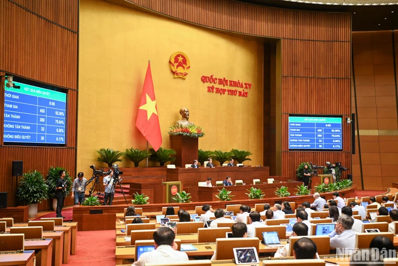 Biểu quyết thông qua toàn bộ dự thảo Luật, có 388/450 đại biểu tham gia biểu quyết tán thành (bằng 79,84% tổng số đại biểu Quốc hội).