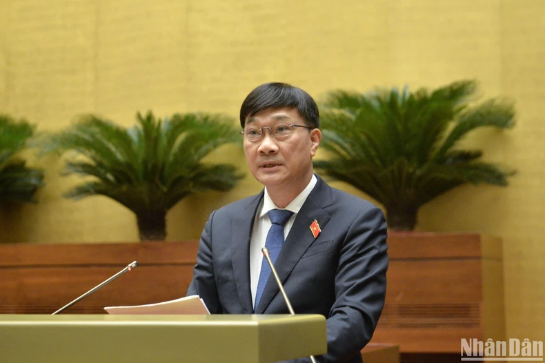 Chủ nhiệm Ủy ban Kinh tế của Quốc hội Vũ Hồng Thanh trình bày báo cáo giải trình, tiếp thu, chỉnh lý dự thảo Nghị quyết trước khi Quốc hội bấm nút thông qua. (Ảnh: ĐĂNG KHOA).
