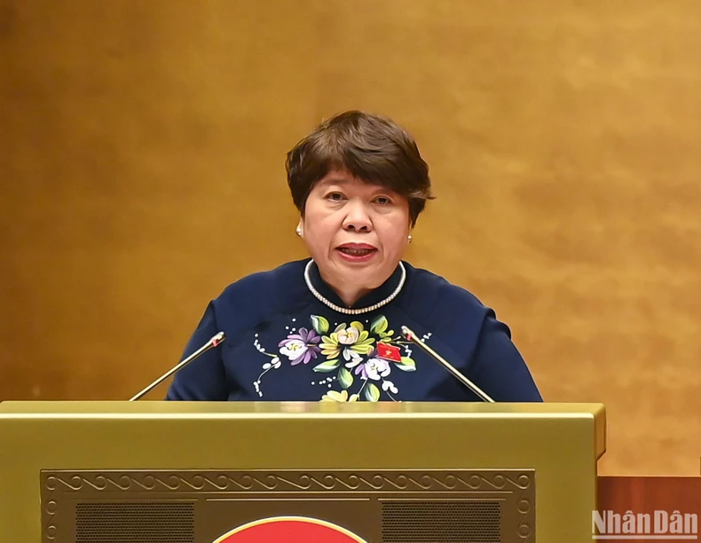 Chủ nhiệm Ủy ban Xã hội Nguyễn Thúy Anh trình bày báo cáo giải trình, tiếp thu, chỉnh lý dự thảo Luật trước khi Quốc hội biểu quyết thông qua. (Ảnh: DUY LINH).
