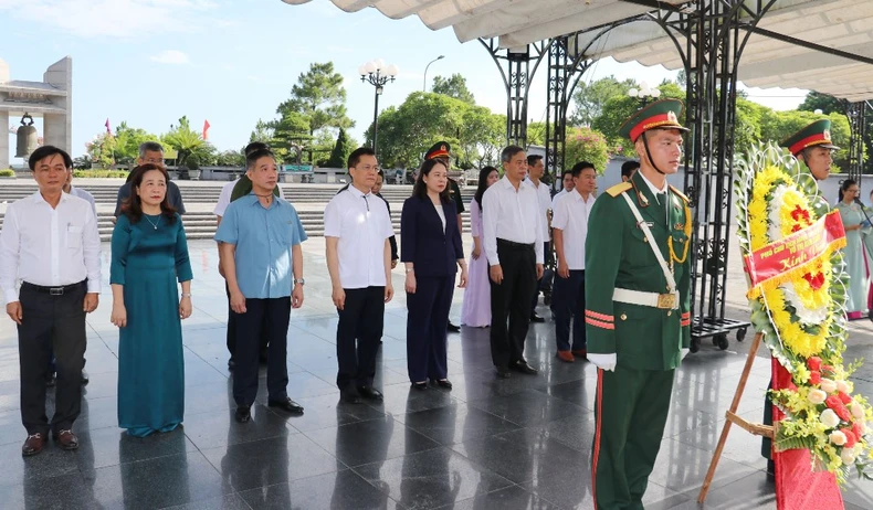 Tại đây, kính cẩn nghiêng mình trước anh linh các anh hùng, liệt sĩ, Phó Chủ tịch nước Võ Thị Ánh Xuân cùng đoàn công tác và lãnh đạo trung ương, địa phương đã dành phút mặc niệm tưởng nhớ công lao của các thế hệ cha ông đi trước đã hi sinh xương máu vì độc lập dân tộc, vì hạnh phúc của nhân dân...