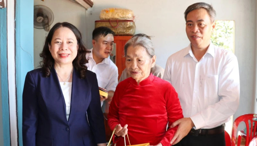 Phó Chủ tịch nước Võ Thị Ánh Xuân thăm, tặng quà Mẹ Việt Nam Anh hùng Lê Thị Mót, sinh năm 1922, có chồng và con là liệt sĩ.