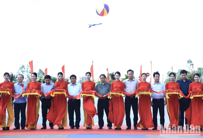Thủ tướng Phạm Minh Chính và các đại biểu tham dự lễ khánh thành tuyến đường nối 2 tuyến cao tốc.
